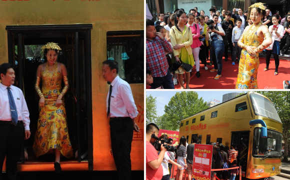 【濟南】"黃金公交車"亮相,車內(nèi)掛千件金飾