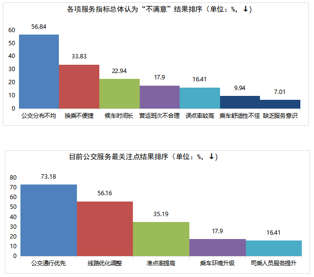 本次調(diào)查共收集有效問(wèn)卷1471份,623條相關(guān)問(wèn)題及建議。問(wèn)卷涵蓋公交線網(wǎng)優(yōu)化、文明服務(wù)、換乘便捷度、候車(chē)時(shí)間、乘車(chē)舒適度、智能信息建設(shè)等多方面內(nèi)容。調(diào)查顯示,參與投票人群年齡結(jié)構(gòu)主要集中在18~59歲,其中以40~59歲為主體。(一)公交服務(wù)滿意度指標(biāo)及數(shù)值根據(jù)交通運(yùn)輸部GB/T 36953.2-2018城市公共交通乘客滿意度評(píng)價(jià)方法,公共交通乘客滿意度指乘客對(duì)公共交通服務(wù)質(zhì)量的滿意程度,評(píng)價(jià)程度設(shè)置為“很滿意”、“滿意”、“一般”與“不滿意”。問(wèn)卷顯示荊門(mén)公交服務(wù)整體滿意度為91.96%。問(wèn)卷顯示公交線網(wǎng)分布不均、線路不合理、換乘不便捷為主要服務(wù)訴求,公交線路分布不均為“不滿意度”投票最高問(wèn)題;主干道公交優(yōu)先通行權(quán)為服務(wù)訴求投票最高關(guān)注點(diǎn)。 此次問(wèn)卷調(diào)查,感謝廣大市民乘客的積極參與,市公交集團(tuán)將結(jié)合實(shí)際,認(rèn)真聽(tīng)取、采納乘客提出的意見(jiàn)及建議,予以改進(jìn): 關(guān)于線路運(yùn)營(yíng)方面,對(duì)5路線(圣境山—?;郏?、88路線(東寶碧桂園—楊家橋)、58路線(碧桂園北—漳河新區(qū)政務(wù)中心)、59路線(荊楚理工學(xué)院—掇刀區(qū)政務(wù)中心)早中晚客流高峰期加密營(yíng)運(yùn)班次和增設(shè)區(qū)間班次,對(duì)33路線(楚天學(xué)校—興化三路東)、69路線(雙喜小學(xué)—園博園東門(mén))、13路線(牌樓—園博園西門(mén))進(jìn)行線路優(yōu)化,方便沿線居民出行需求;近期擬開(kāi)通碧桂園翡翠公館至長(zhǎng)崗萬(wàn)人社區(qū)、東寶政務(wù)中心至市政務(wù)中心公交線路,具體方案正逐步規(guī)劃中。