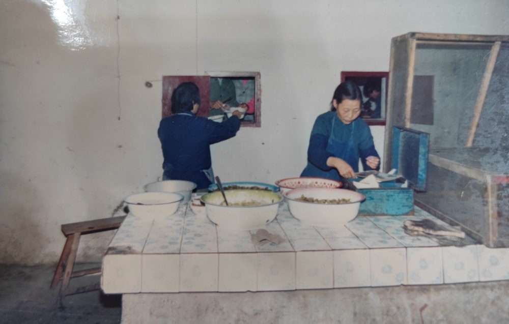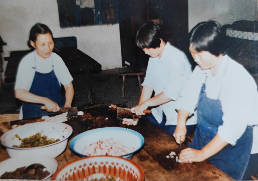 ▲80年代,職工食堂工作場(chǎng)景。每天清晨開始切配食材。