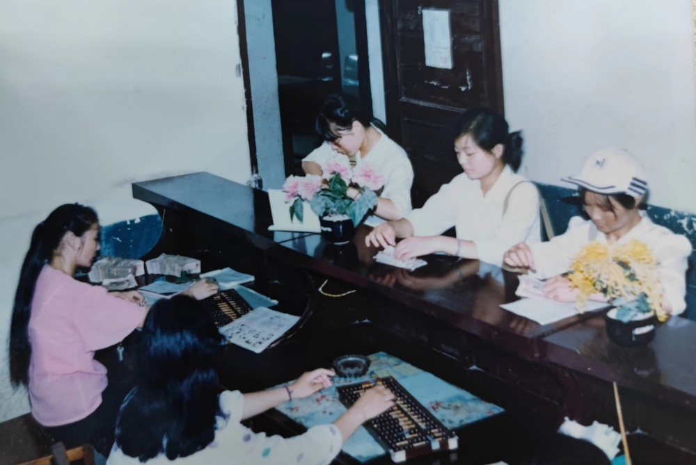 ▲80年代,票務(wù)室工作場(chǎng)景。售票員拿著票款到票務(wù)室,兌換車票。