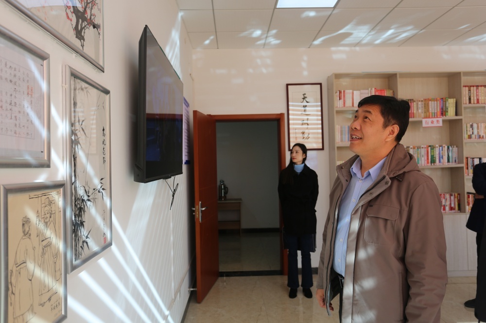 調(diào)研中,楊平一行實(shí)地察看了集團(tuán)職工書(shū)屋軟硬件配套設(shè)施,了解企業(yè)文化建設(shè)、思想引領(lǐng)、書(shū)屋管理及讀書(shū)活動(dòng)開(kāi)展情況。