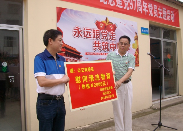 當(dāng)天的活動(dòng)中,市政府國(guó)資委機(jī)關(guān)總支為市圓夢(mèng)殘疾人庇護(hù)工場(chǎng)捐贈(zèng)了慰問(wèn)金,并為一線公交駕駛員送去了防暑降溫物資。