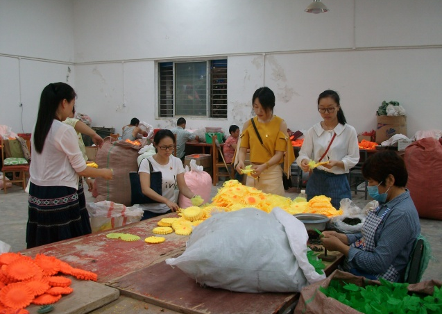 當(dāng)日9時(shí),在荊門(mén)市圓夢(mèng)愛(ài)心幫扶會(huì)會(huì)議室中舉行了升旗儀式,黨員們重溫入黨誓詞,認(rèn)真學(xué)習(xí)了習(xí)近平總書(shū)記視察湖北重要講話精神。隨后孟麗華介紹了市圓夢(mèng)殘疾人庇護(hù)工場(chǎng)的相關(guān)情況,2014年,在孟麗華的牽頭下,籌建了一個(gè)助殘扶弱的公益組織,取名為荊門(mén)市圓夢(mèng)愛(ài)心幫扶會(huì),創(chuàng)辦了一個(gè)專(zhuān)門(mén)為殘疾人服務(wù)的庇護(hù)工場(chǎng)。為了更深入的了解市圓夢(mèng)殘疾人庇護(hù)工場(chǎng),黨員們?cè)诮庹f(shuō)員的陪同下,參觀殘疾人員工的工作環(huán)境,還一起與員工們編織手工花朵,為工場(chǎng)打掃衛(wèi)生,清除雜草,給這些殘疾人員工一個(gè)更好的工作環(huán)境。